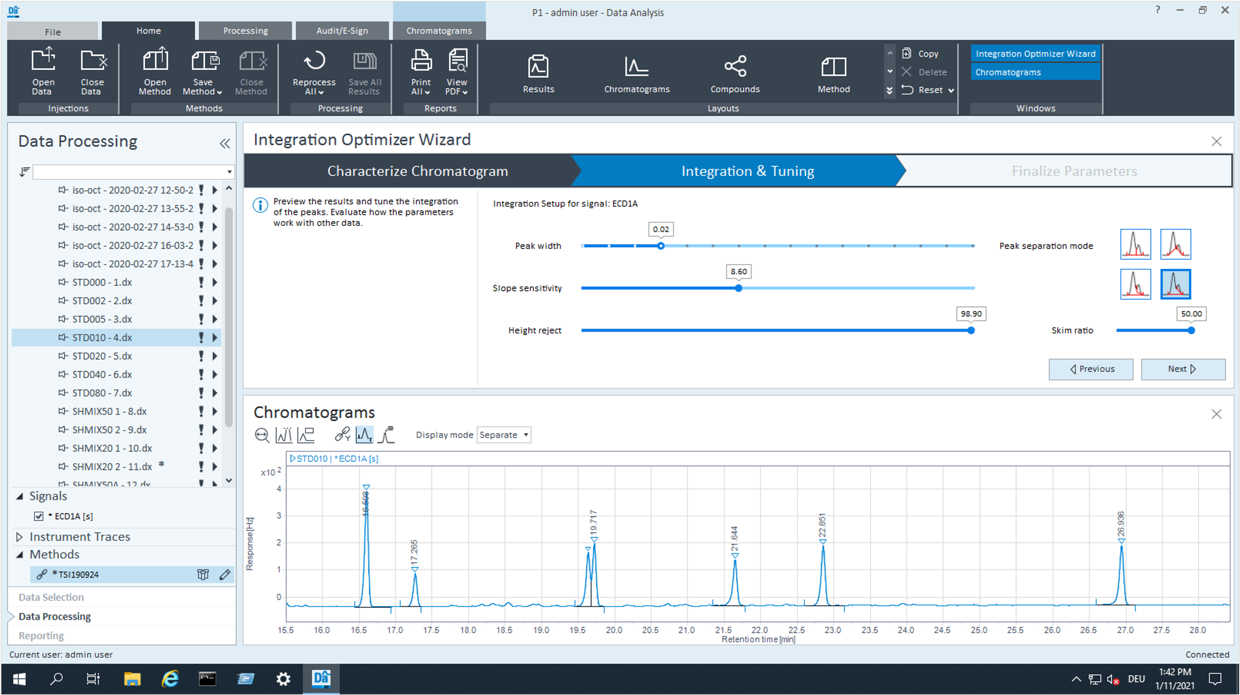 The Integration Optimizer guides you to the best settings for your analysis and enables easy deployment of these settings to the lab to operationalize faster more consistent results. This new feature provides assisted optimization with representative data so that less experienced analysts can do it right and expert analysts can do it fast. Analysts can then save and deploy the optimized integration settings, so everyone uses the same optimized settings for their analysis. This capability can be set up to be role-based, which is important for ensuring data integrity.