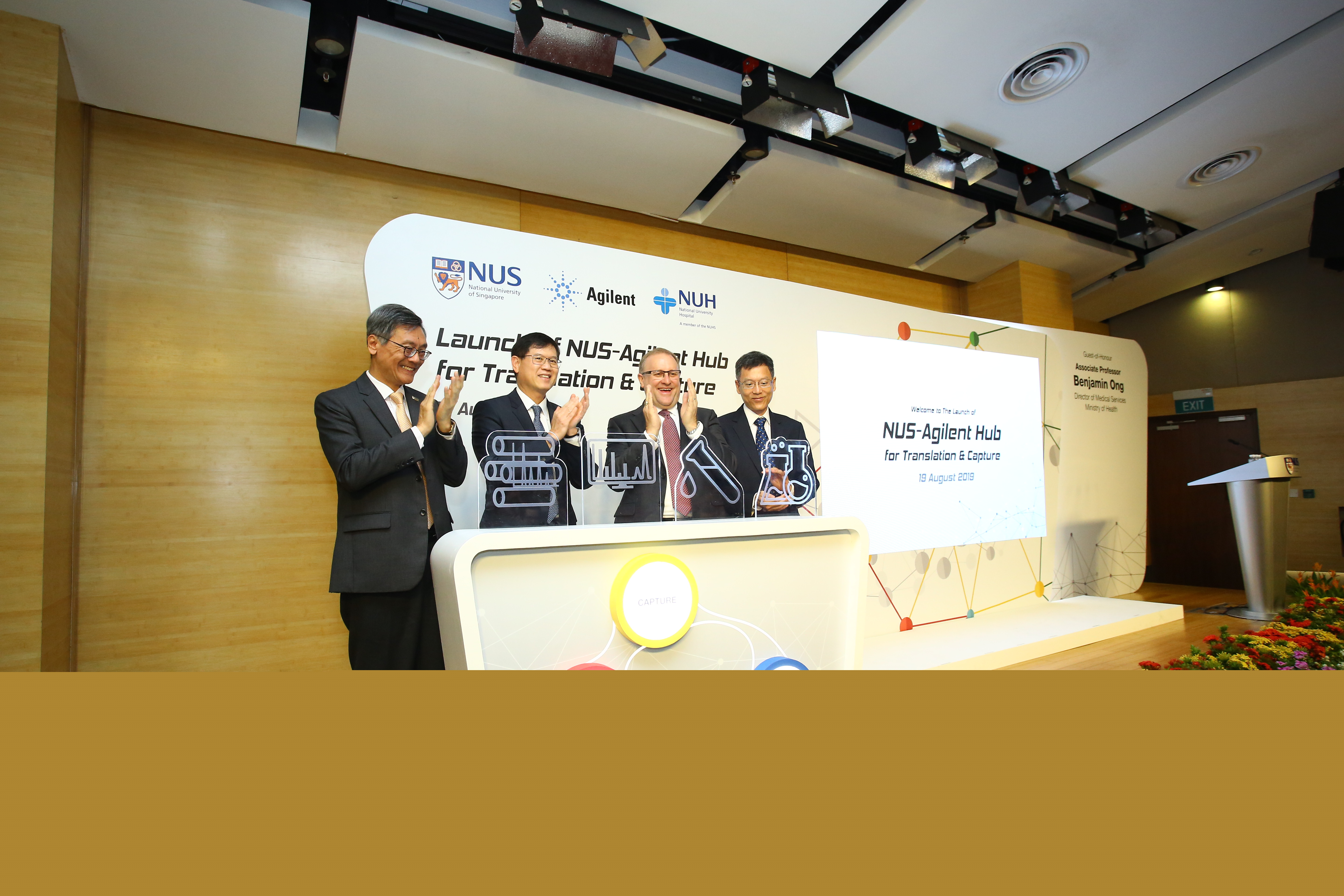 The NUS-Agilent Hub for Translation & Capture (NUS-Agilent Hub) was officially launched by Associate Professor Benjamin Ong, Director of Medical Services of the Ministry of Health, at the opening ceremony held in NUS today. The research hub, which comprises laboratories located in NUS and NUH, provides 1,000 square metres of research space to facilitate multidisciplinary collaborations among scientists, clinicians, and industry partners to translate biochemical research into clinical applications. Through research in areas such as lipidomics and synthetic biology, and supported by data analytics, NUS and Agilent hope to develop innovative ways that enhance the accuracy of clinical diagnostics based on data obtained from patients' blood samples. The initial research focus areas are cardiovascular disease and diabetes, which account for 30 percent of all deaths in Singapore in 20171, and affected 440,000 Singaporean adults in 2014, respectively2.