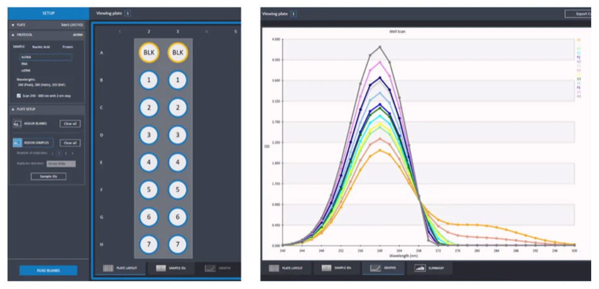 Simple plate management allows the user to add multiple Take3 and Take3 Trio plates. Pathlengths can be imported or added manually for each plate in the library.