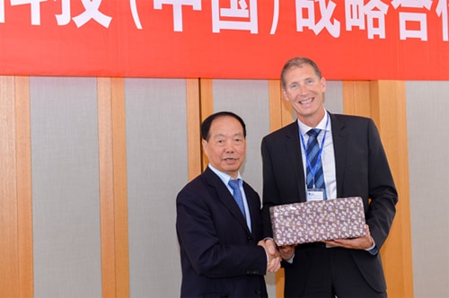 海正药业董事长白骅先生(左)与安捷伦科技高级副总裁兼生命科学与