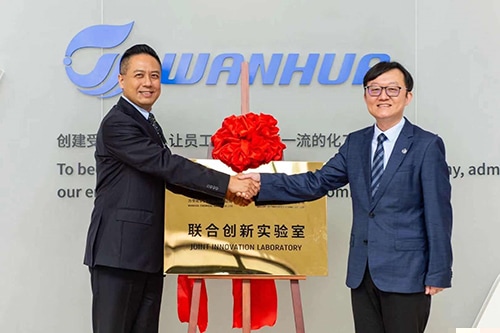 万华化学常务副总裁、首席技术官兼中央研究院院长 华卫琦 (右)