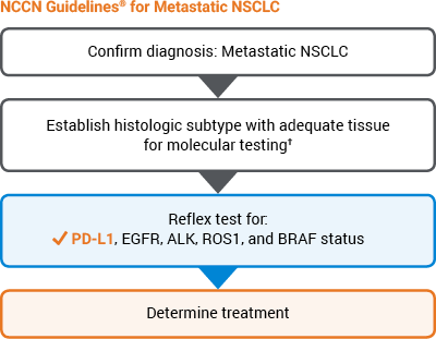 References: 1. PD-L1 IHC 22C3 pharmDx [package insert]. Carpinteria, CA: Dako, Agilent Pathology Solutions; 2018. 2. Keytruda [package insert]. Kenilworth, NJ: Merck & Co., Inc.; 2018. 3. European Commission approves KEYTRUDA® (pembrolizumab) for first-line treatment of patients with metastatic non-small cell lung cancer (NSCLC) whose tumors have high PD-L1 expression with no EGFR or ALK positive tumor mutations [news release]. Kenilworth, NJ; Merck & Co., Inc.; January 31, 2017. http://www.mrknewsroom.com/news-release/oncology-newsroom/european-commission-approves-keytruda-pembrolizumab-first-line-treatm. Accessed December 21, 2017. 4. Garon EB, Rizvi NA, Hui R, et al. Pembrolizumab for the treatment of non-small-cell lung cancer. N Engl J Med. 2015;372(21):2018-2028. 5. Herbst RS, Baas P, Kim DW, et al. Pembrolizumab versus docetaxel for previously treated, PD-L1-positive, advanced non-small-cell lung cancer (KEYNOTE-010): a randomised controlled trial. Lancet. 2016;387(10027):1540-1550. 6. Reck M, Rodríguez-abreu D, Robinson AG, et al. Pembrolizumab versus chemotherapy for PD-L1-positive non-small-cell lung cancer. N Engl J Med. 2016;375(19):1823-1833. 7. Data on file. Merck & Co., Inc. 8. Referenced with permission from the NCCN Clinical Practice Guidelines in Oncology (NCCN Guidelines®) for Non-Small Cell Lung Cancer V.1.2018. © National Comprehensive Cancer Network, Inc. 2017. All rights reserved. Accessed December 21, 2017. To view the most recent and complete version of the guideline, go online to www.NCCN.org. National Comprehensive Cancer Network® (NCCN®) makes no warranties of any kind whatsoever regarding their content, use or application and disclaims any responsibility for their application or use in any way.
