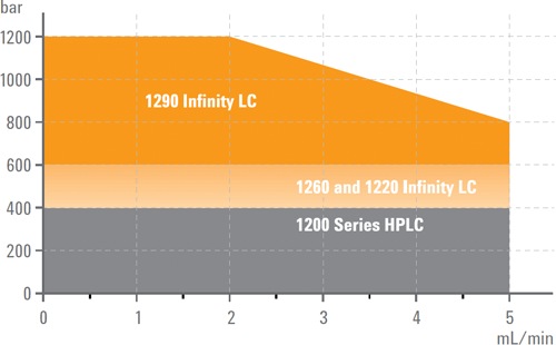 Figure 4. The wide power range of the Agilent 1290 Infinity LC ensures that you can execute both HPLC and UHPLC methods from narrow bore to standard bore columns.