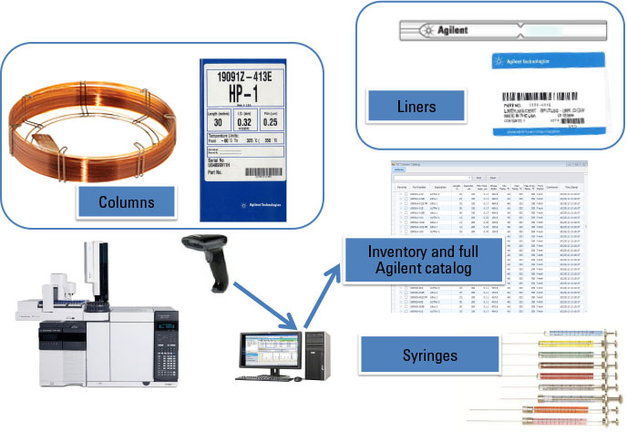 Figure 1. Enter the barcode of columns, liners, and syringes right into the Agilent data system to maintain inventory and identify supplies with like-for-like replacement.