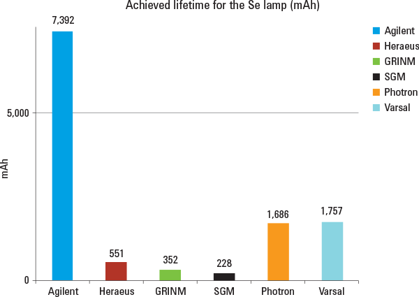 Figure 3. The Agilent selenium hollow cathode lamp delivers the longest lifetime.