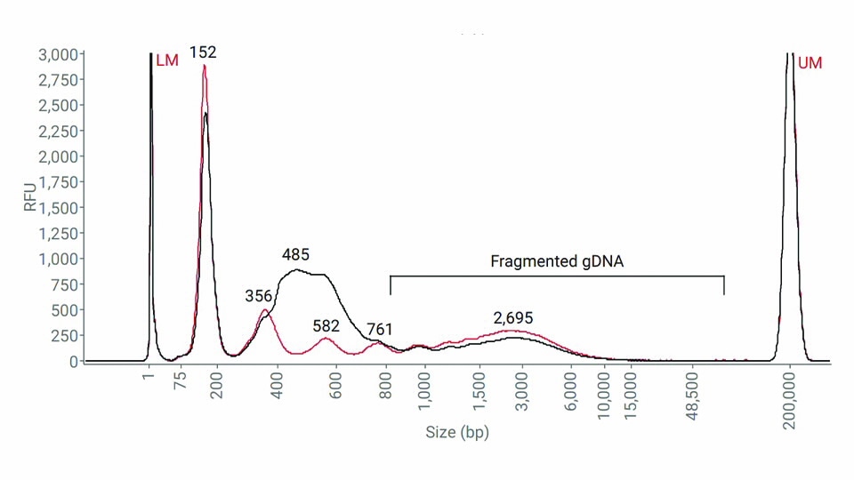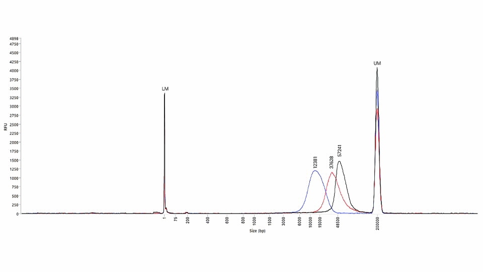 The large fragment kits for the Agilent Fragment Analyzer systems are used for automated quality and quantity analysis of large DNA fragments, smears, long-read sequencing libraries, and single-molecule sequencing. Easy analysis of DNA fragment sizing, quality, and concentration expedites decisions and improves workflow.