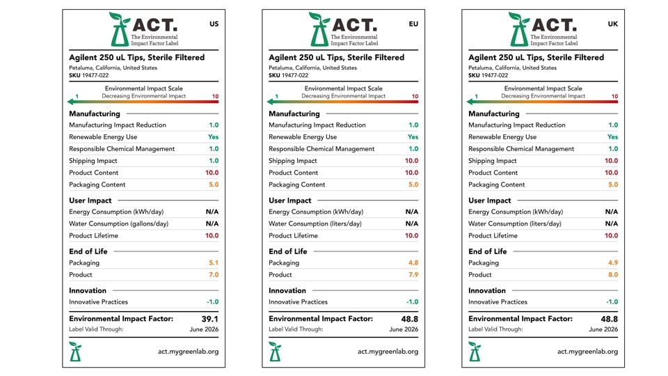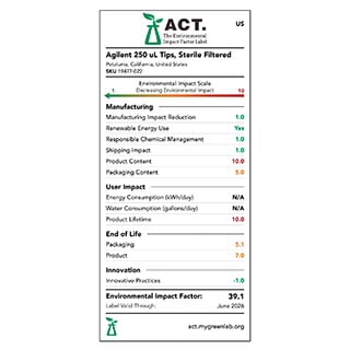 Independently audited by SMS Collective, LLC (SMSC), and published by My Green Lab, the ACT label from My Green Lab provides information about the environmental impact of the product throughout its life cycle. My Green Lab is a nonprofit dedicated to improving the sustainability of scientific research.