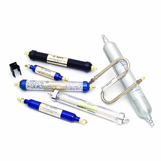 Agilent inline gas purifiers (traps or filters) remove common contaminates such as oxygen, moisture, and hydrocarbons from GC carrier and detector gases. Our GC gas purifiers are available in different sizes and configurations such as combination gas traps that remove moisture, oxygen, and/or organics with a single trap. Using oxygen and moisture traps for carrier gas extends column life and protects the instrument. Removing hydrocarbons helps improve detector baselines.