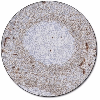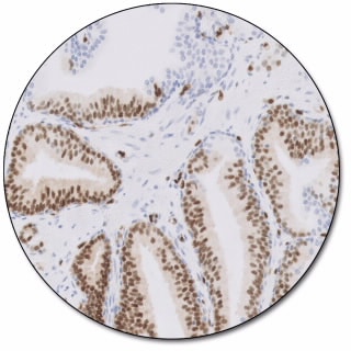 This antibody is a useful aid for the classification of prostate adenocarcinoma (1, 2). Furthermore, ERG may also be a useful aid for classification of prostatic intraepithelial neoplasia (PIN) and vascular tumors.