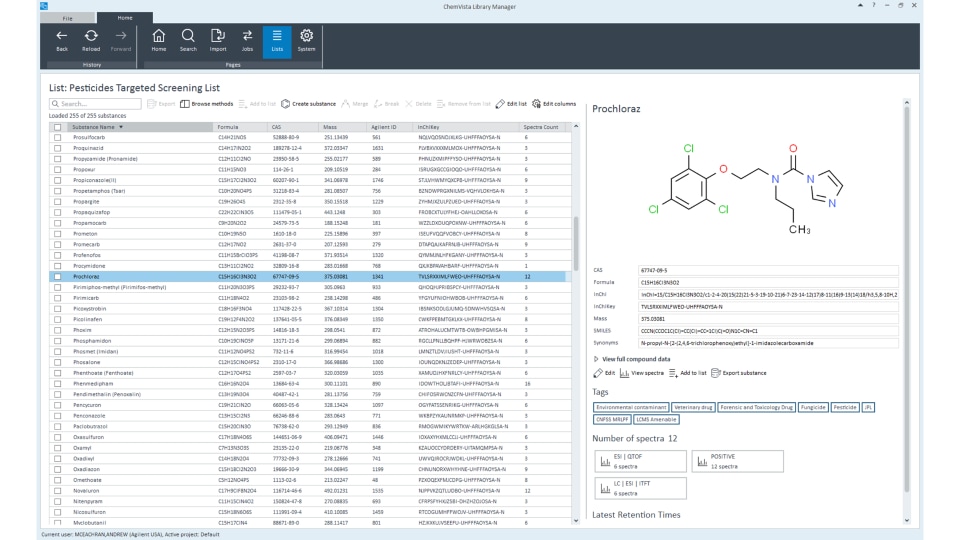Agilent ChemVista library manager software enables comprehensive spectral library management. It can also integrate compound, retention time, and mass spectra from multiple sources into one location, streamlining unknowns identification workflows in MassHunter data analysis software.