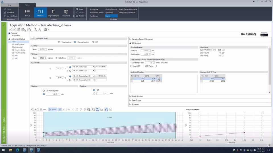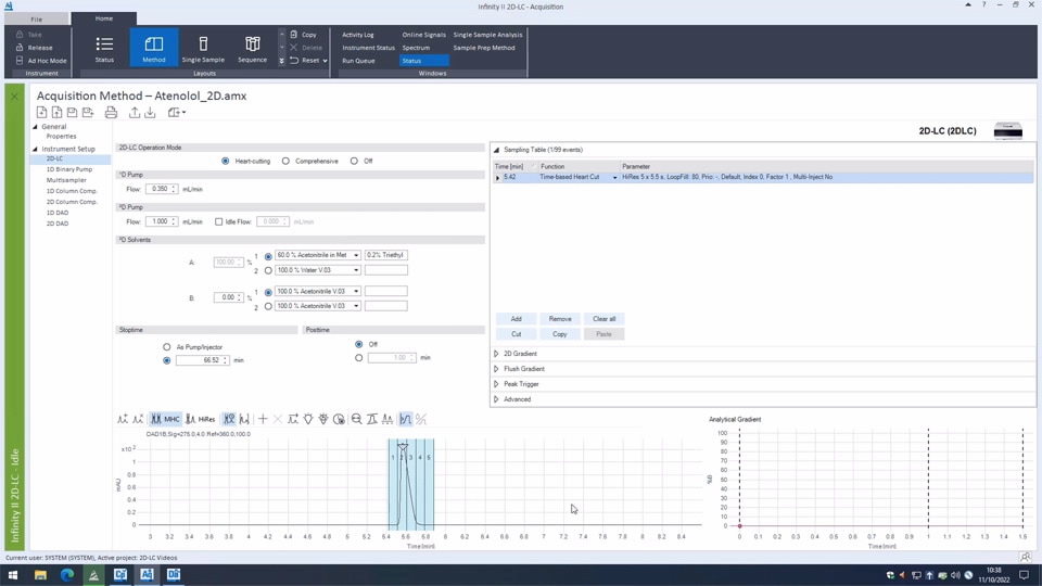 As a part of Agilent InfinityLab two-dimensional liquid chromatography solutions, 2D-LC software allows you to run heart-cutting 2D-LC analysis, including high-resolution sampling and comprehensive measurements. It helps you to increase resolution for co-eluting compounds, analyzing complex samples, or sample matrices.