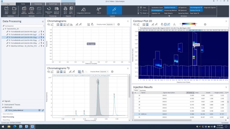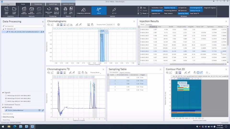 The 2D-LC software also provides comprehensive data analysis and reporting capabilities, and can analyze multidimensional data qualitatively or quantitatively - easily yet powerfully. Analyze and use 2D-LC/MS data for the most extensive information about your samples.
