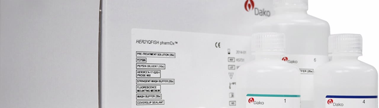 HER2 IQFISH pharmDx is the latest Dako HER2 diagnostic kit indicated as an aid in the assessment of patients for whom Herceptin™ treatment is considered.