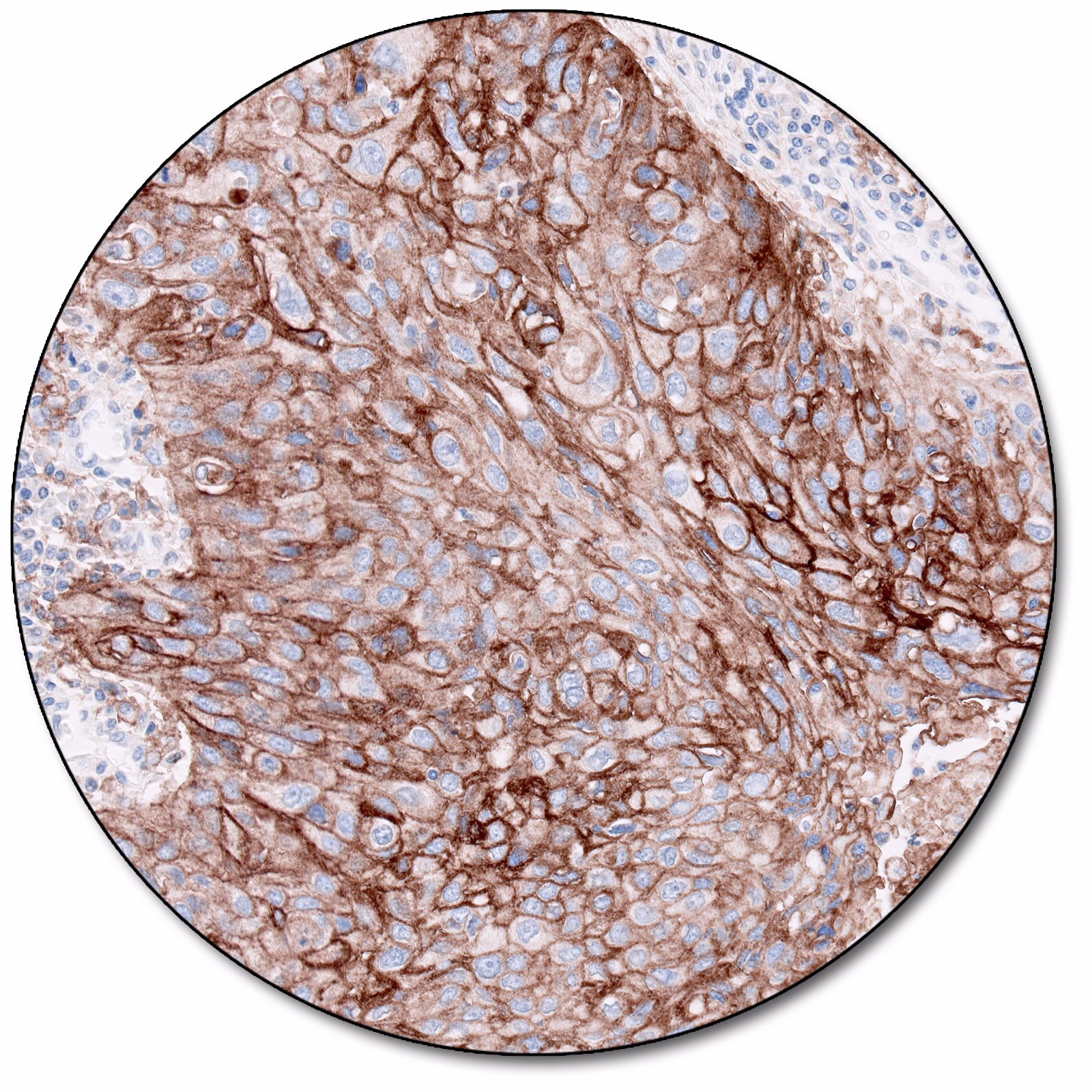 PD-L1 protein expression in NSCLC, non-squamous non-small cell lung cancer (nsNSCLC), SCCHN, UC, muscle invasive carcinoma (MIUC), melanoma, and esophageal squamous cell carcinoma (ESCC) is determined by using % tumor cell expression, which is the percentage of evaluable tumor cells exhibiting partial or complete membrane staining at any intensity.