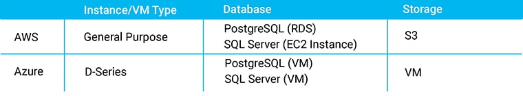 - Test/Dev — Used for initial testing to define instance sizing and performance tests.