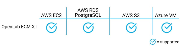 The following instances have been tested and are supported for OpenLab CDS+ECM XT application servers.