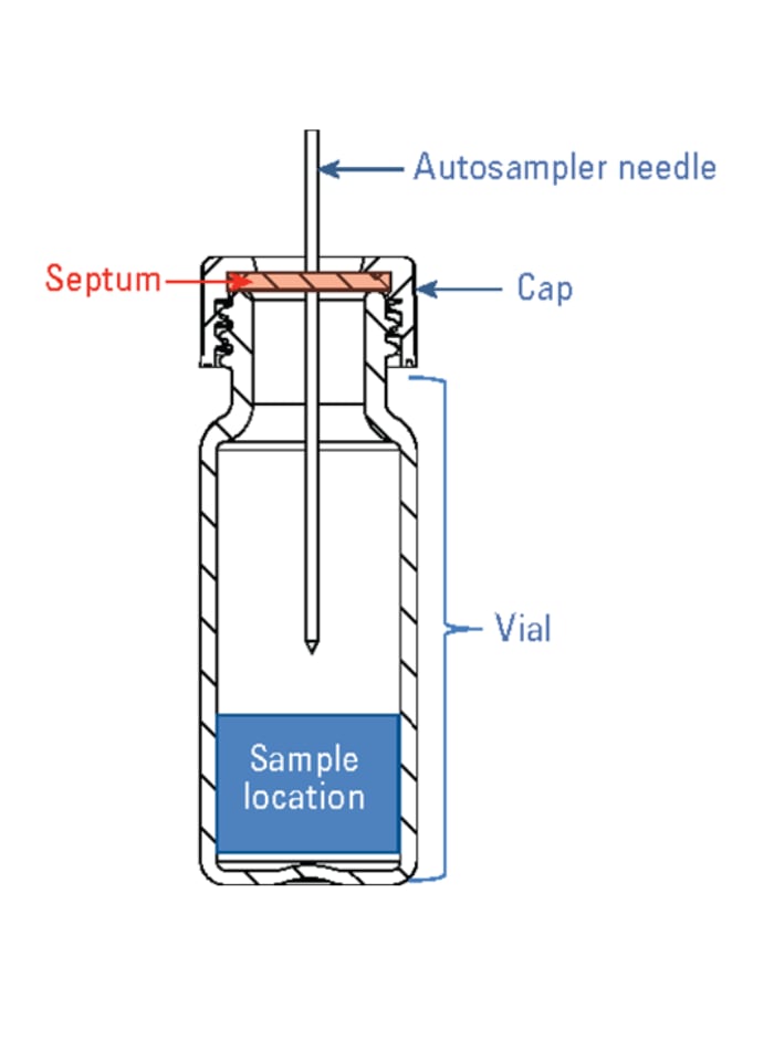 A sample container in analytical analysis and testing contains 3 important components - vial, cap and septum, when combined provides your sample a fully contained environment prior to being introduced into the analytical workflow via the injection needle.