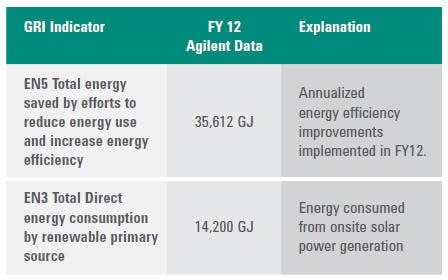 Agilent has a broad spectrum of initiatives ranging from capital spending for energy conservation projects and solar power to operational practices and employee action. For example, prior to delivery to employees, our IT service provider configures PCs and laptops with fully enabled, energy-saving settings. Operationally, we conserve energy by closely managing office heating/cooling and lighting, developing energy-efficient building design and operating standards and sharing best practices among sites. We also have a corporate energy conservation manager on staff and dedicated staff from our facilities maintenance company, whose primary role is to support the site facilities staff in identifying, implementing, and validating energy-saving opportunities.