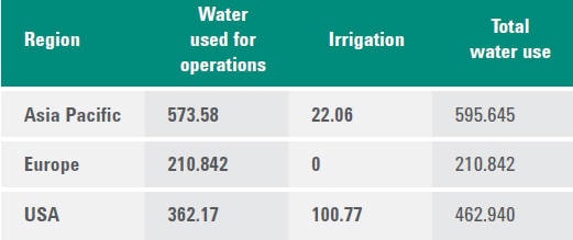 Most of our manufacturing sites’ water comes directly from the city water supply. However, the following sites draw some water from the local aquifer: Manesar, India; Torino, Italy; Hachioji, Japan; Santa Rosa, U.S.