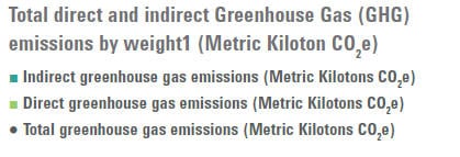 EN16 TOTAL DIRECT AND INDIRECT GREENHOUSE GAS EMISSIONS BY WEIGHT