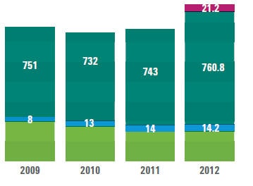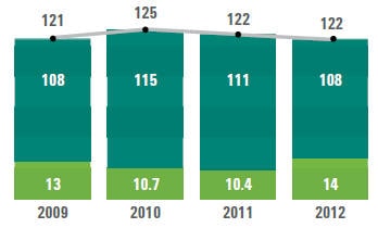 We completed several energy-conservation infrastructure projects as well as operational improvements in 2012. Our net energy conservation for FY12 (for sites included in this report) was 4 percent (using FY11 total energy spend as a baseline).