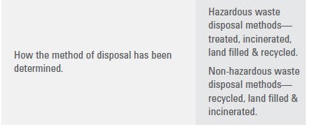 shipped offsite for treatment, recycling, incineration, and landfill; and
