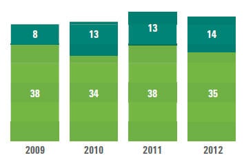 We do not currently report on this, as we lack automated reports for gathering the data; we expect to be able to report in 2014.