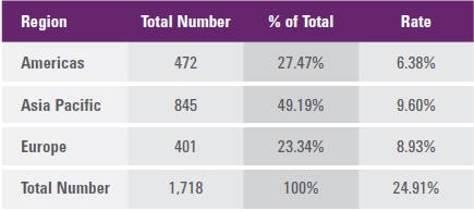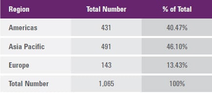 The total workforce broken down by region and gender based on the scale of the organization's operations.