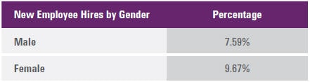 Total number of new employee hires entering employment during the reporting period broken down by gender.