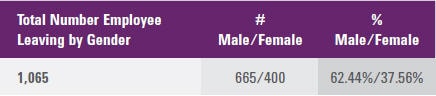 Total number of employees leaving employment during the reporting period boken down by gender.