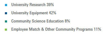 In 2013, Agilent and the Agilent Technologies Foundation provided $13.9 million in university grants and equipment supporting science and technology research at the forefront of electronic and bio-analytic measurement technologies. In addition, $1.3 million in pre-university science-education grants supported programs reaching more than 6,000 educators and 600,000 students worldwide. Through employee match programs and other community investments, Agilent and the foundation provided $1.9 million in donations. In total, Agilent and the Agilent Technologies Foundation invested more than $17 million in philanthropic cash and equipment in 2013.