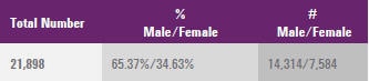 The total number of employees broken down by type of employment contract and gender.