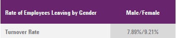 Rate of employees leaving employment during the reporting period broken down by gender.