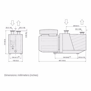 흡입구 차단 밸브가 펌프에 통합되어 있어 펌프 전원이 차단될 때마다 흡입구를 차단합니다. 이 역류 방지 밸브는 러프 또는 포어라인에서 진공을 유지하고 펌프 오일이 진공 챔버를 오염시키는 것을 방지합니다. DS 202에는 수동 가스 밸러스트 밸브가 있어 개방 시 펌프가 수증기 처리 정격 사양에 도달할 수 있습니다.