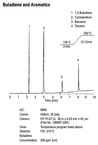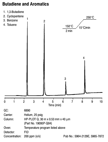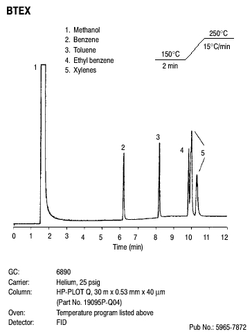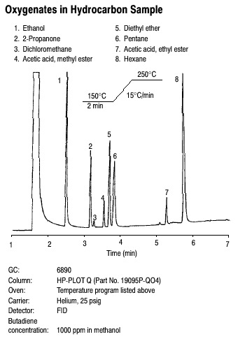 The HP-PLOT Q is a bonded polystyrene-divinylbenzene (DVB) based column that has been specially developed for the separation of targeted apolar and polar compounds including: