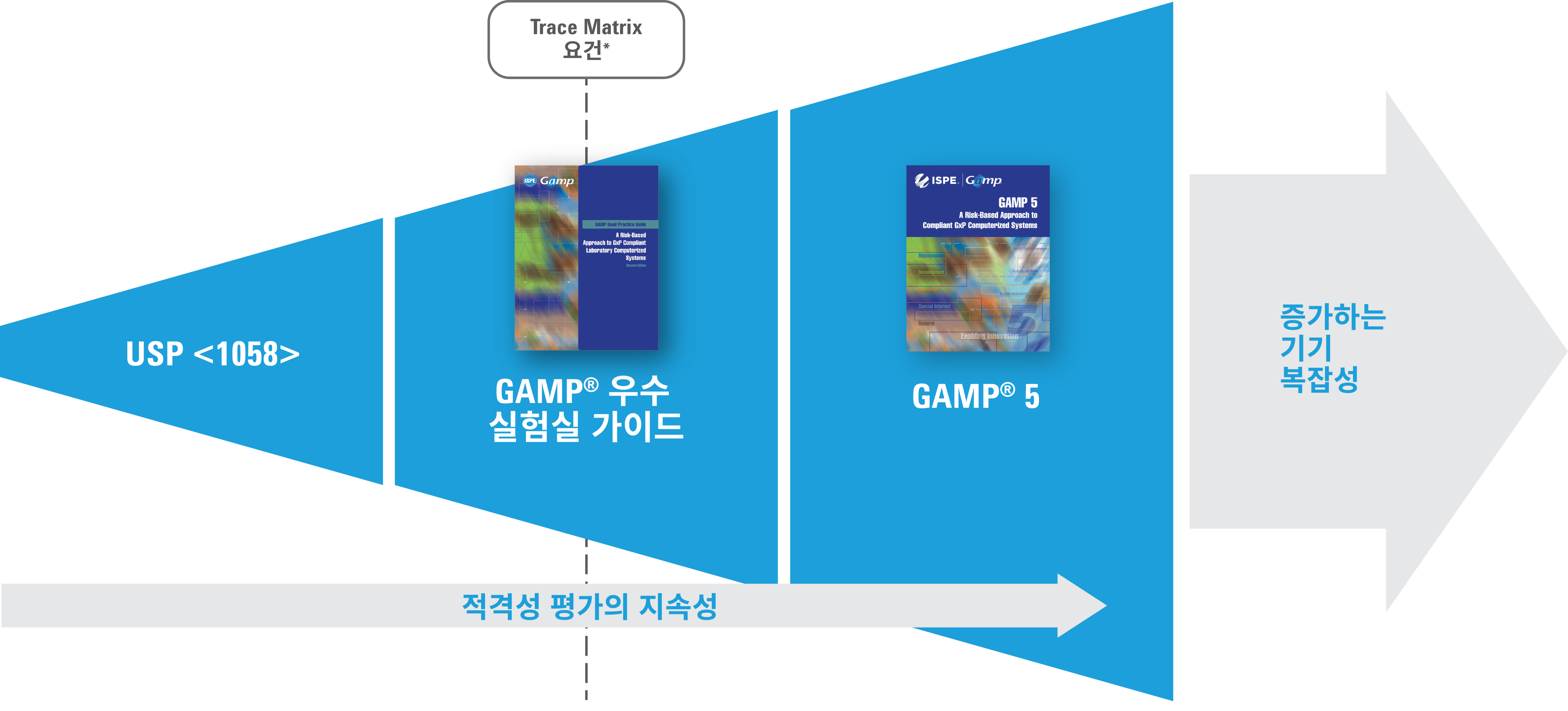 * 적격성 평가 라이프 사이클의 특정 Requirements Trace Matrix를 포함하는 요건은 사용 목적, 기기 복잡성에 따라 달라지며, 회사 정책 GAMP는 ISPE의 등록 상표입니다. GAMP 발행물을 보시려면 ISPE 웹사이트를 참고하십시오. www.ispe.org/publications/guidance-documents
