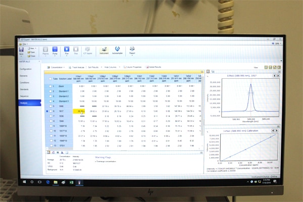 ICP-OESをはじめ、昔から数々の分析機器に触れてきた山崎博士。現在使っているAgilent 5110をどうみているのでしょうか。山崎博士は、「以前使っていた他社製のICP-OESに比べて、ソフトウェアの使い勝手は格段に良くなりました。測定した元素の濃度が画面に表示される際、以前の装置ではそのデータを一旦どこかに移し替えてからExcelに出力するという作業が必要でしたが、Agilent 5110では、一発でExcelに出力することができます」と、そのソフトウェアの使いやすさについて高く評価します。