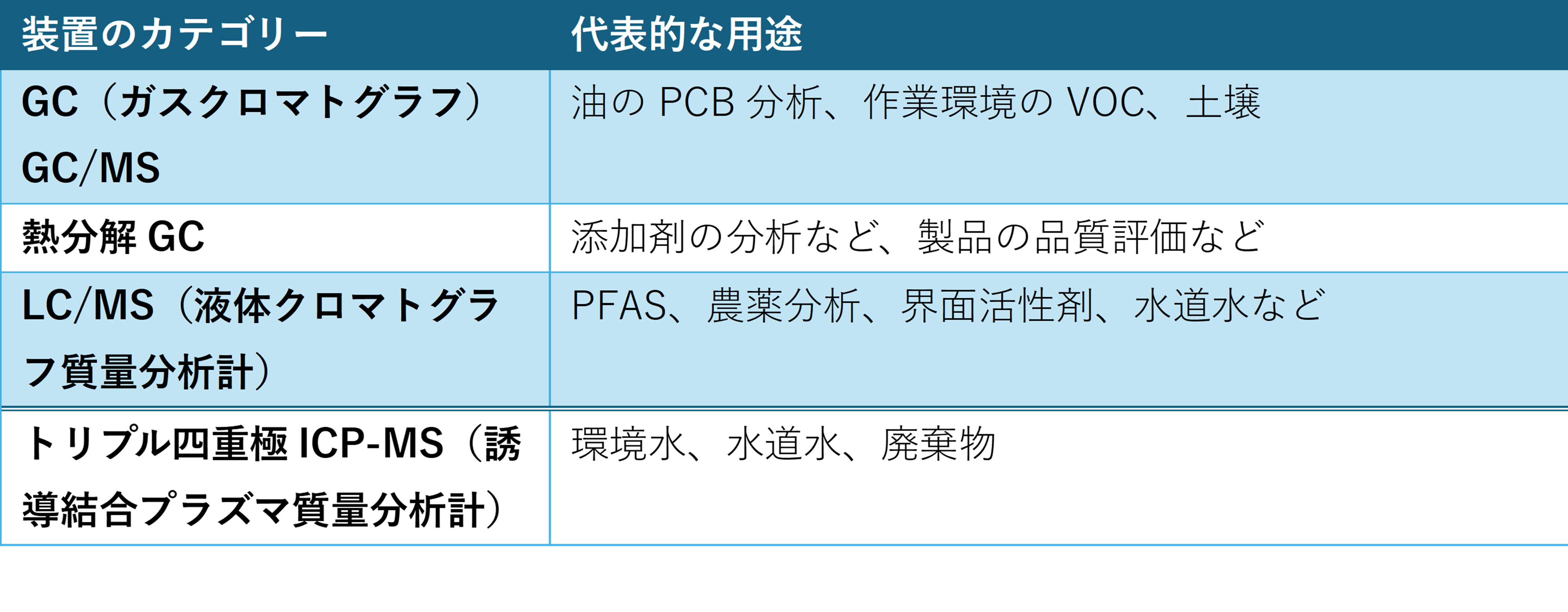 油のPCB分析、作業環境のVOC、土壌などの分析にGCやGC/MSを活用