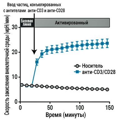 Получение возможности заблаговременно обнаруживать ответы активации Т-клеток в пределах нескольких минут стимулирования посредством измерения скорости внеклеточного окисления в режиме реального времени.